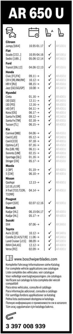 AERO Twin Retrofit AR650U Bosch balais Essuie Glace Multi adaptateurs 650mm